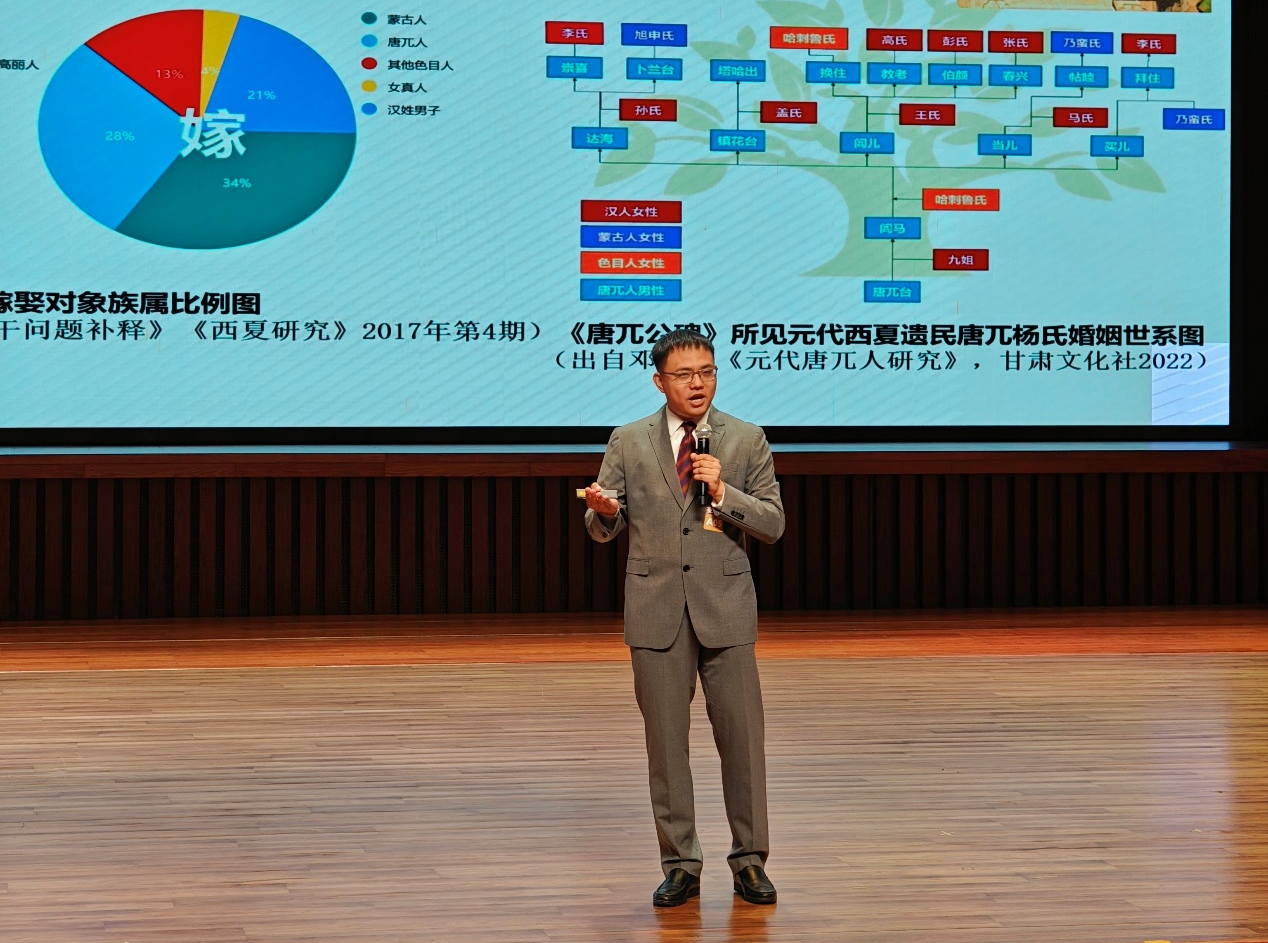 邓文韬选取《概论》教材第九讲《混一南北和中华民族大统和》第三节《胡汉一家》作授课展示,通过三对元代情侣故事所体现的族际通婚、互嵌杂居与文化交融史实,以深入浅出且富有激情的讲述方式,融入科研成果和极具特色的教学设计,赢得了现场评委与观摩师生的一致好评。