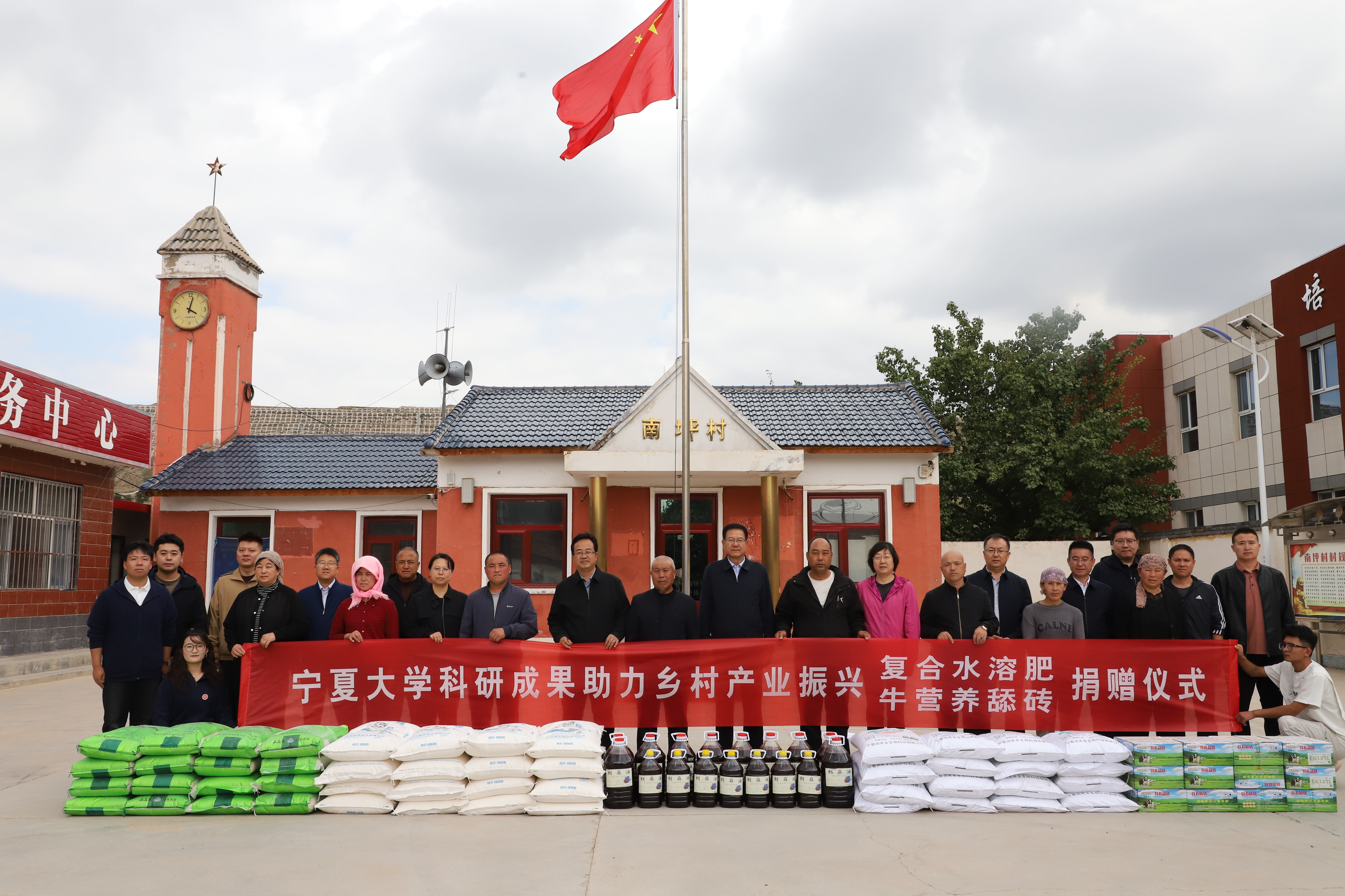 【必赢242net官网新闻中心讯 王文娣/文、图】9月26日,校党委书记王宏伟,校党委副书记韩惠丽,校党委常委、组织部部长张永丽一行赴固原市原州区头营镇三和村、炭山乡南坪村开展调研慰问活动。调研期间亲切看望学校派驻当地的驻村工作队队员与研究生支教团成员,实地考察乡村振兴帮扶及支教工作进展,并向当地赠予必赢科研成果复合水溶肥及牛营养舔砖。