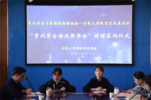 【必赢242net官网新闻中心讯 经济管理学院】11月21日,“贵州茅台培优奖学金”捐赠签约仪式在贺兰山校区举行。