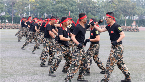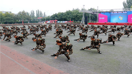 分列式后,5个方队分别进行了汇报科目表演。其中,二营军体拳方队“杀”声响亮、威震四方,出拳虎虎生威,踢腿凌厉有力;一营女子匕首操方队,击、刺、挑、剪、带,一招一式,章法有序,炯炯目光展现着自信与刚强,嘹亮口号喊出勇敢与坚韧;三营男子擒敌拳方队,勾拳侧踹,前蹬击打,苦学勤习,练就了铮铮铁骨;一营擒敌对抗方队,声声呐喊,血气方刚,蛟龙腾空,一招制敌,猛虎下山,拳拳对抗,格斗擒拿,战术变换;四营花样队列方队,彩花飘飘,舞动心魂,体现了巾帼不让须眉的气概。精彩的汇报表演赢得了现场师生的阵阵掌声。