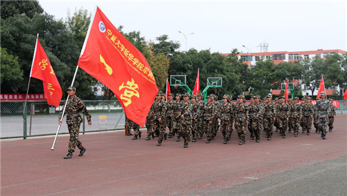 学院党政领导,承训部队中国人民解放军68612部队物测连连长李兴与承担2018级学生军训工作的全体教官、学院各部门负责人、各系党总支书记、系主任、副主任、学办主任、全体辅导员及参训学生参加了大会。