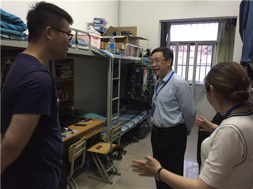 在土木与水利工程学院15#公寓学生公寓,范讯听取了学院相关负责人对公寓文化上墙、宿舍信息牌、党员学干亮身份、宿舍卫生评比等宿区管理工作的汇报。他还亲切询问同学对于宿舍关系、大学生职业生涯规划等问题的看法,并查看了宿舍卫生状况。在与同学们的交流过程中,范讯勉励同学们要树立远大理想,为必赢242net官网的发展做出贡献。