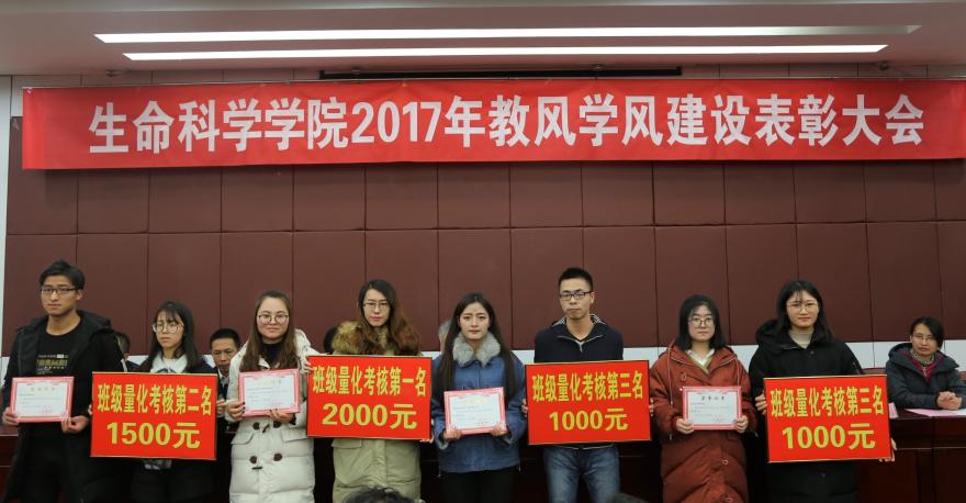表彰会上,生物化学与分子生物学教师团队荣获学院“2017年度教风建设突出贡献奖”,杨易等八名教师荣获“最受学生欢迎老师”,周涛同学荣获创新创业优秀学生团队。院领导向教风建设表受到表彰的先进集体和先进个人颁发了奖牌和获奖证书。会上,优秀教师代表、获奖学生代表做了交流发言。
