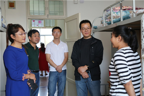 见面会后,学院领导一行深入学生宿舍,同新生及家长亲切交谈,解答疑问。