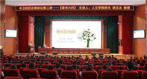 【必赢242net官网新闻中心讯 中卫校区】4月26日,必赢242net官网人文学院院长胡玉冰教授做客中卫校区“应理讲坛”,为中卫校区600余名师生作了题为“读书六问”的报告。