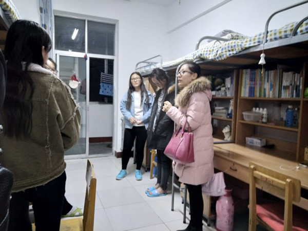 学办老师们先后到文萃校区学生6、9、11和15号公寓楼,查看了学生返校及开学第一天上课的准备情况,同时在走访过程中与同学们进行面对面的交流,了解学生假期生活状况,并了解毕业班学生考研初试、复试准备和目前就业情况,同时检查了宿舍卫生,查看了学生宿舍安全的重点部位。就检查情况来看,学生精神状况良好,为开学第一天上课做了认真准备,毕业班考研同学正在积极准备复试,找工作的同学做好应聘准备。