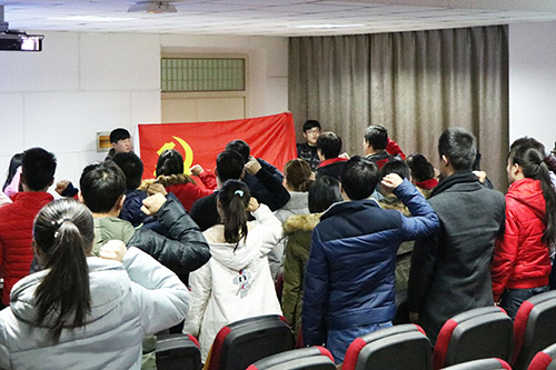 大会就预备党员转正问题进行了讨论和无记名表决。首先,10名中共预备党员依次做自我介绍及预备期总结报告,并正式向组织提出转正申请。他们从个人思想、学习成绩方面作了汇报工作,结合自身优缺点,反省自我,励志人生,表达对党的无限崇敬和热爱。随后,入党介绍人及本班同学对预备党员的工作汇报作出点评,支部正式党员做出无记名表决。经庄严宣誓,10名预备党员正式加入中国共产党。最后,海旭林以一个共产党员的身份,提醒同学们提高国家责任感、民族屈荣感,以共产党员的高标准、严要求勉励自己,过充实、有意义的大学生活。