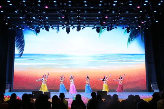 迎新年晚会在热力十足的HipHop《RHYTHM TA》的开场舞中拉开了精彩的序幕。《青花瓷》一舞中的舞蹈演员如同从书卷之中袅袅走来的江南女子,轻盈的舞姿让人如痴如醉;而汉舞《礼仪之邦》中身穿汉服的女子衣袖挥动之间,汉朝的芳华依稀可见。一首《Counting Stars》不仅展现了歌唱者的清亮歌喉,而且表达了他们追逐梦想的决心。情景剧《风催少年》则无言地讲述了以五四运动为背景,有志青年们为国奋起的英雄之姿。之后的草裙舞《Whenever》仿佛将我们带到了夏威夷那片热情的海滩。吉他连唱《公路之歌+山风一样自由》中,清灵的歌声带给了在场的人们一种源自心底的感动,而小提琴和手风琴表演——《菊次郎的夏天+加类比海盗》则通过清新悦耳的乐声引人陶醉其中。现代舞《cry cry》、《Boom Clap》舞出了青春激昂灵动的步伐。诗朗诵《路漫漫,怀抱长征》在建党九十五周年之际为红军的大无畏英雄精神献上衷心的赞歌。最后在歌声动人、余音回旋,众人互动合唱的《千千阙歌+喜剧之王+K歌之王》中晚会落下帷幕。整场晚会音响优良、灯光绚丽、背景精美、舞美炫彩,表演者们歌舞动人,表现形式多彩,观众掌声如潮,而穿插其间的微信互动和抽奖环节也为晚会的热烈氛围再添一笔。