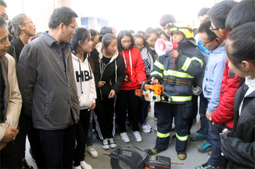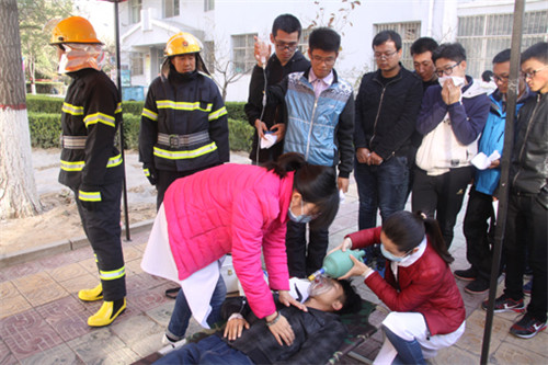 朔方路派出所所长彭伟、教导员李永,朔方路街道办主任沙展,宁安社区主任王巧玲,学院党政领导,各部门负责人及学生代表1000多人观摩了消防演习。
