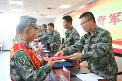 会上,张静䶮对模拟营上半年工作做了点评,并对下半年的工作开展做出指示;紧接着,刘伯川副处长宣读了模拟营最新骨干任职命令,共有103人接受骨干任命;唐志轩对新学员为期一月的军训做了总结性讲话,对军训期间涌现的优秀个人和集体提出了表扬,并鼓励大家向优秀学习,朝优秀看齐;马绍宇向大家公布了新生军训中的先进单位,并颁发荣誉证书和奖品。会议最后,田洪亮对上半年的工作情况做了补充发言,并开展了国防安全形势教育。铿锵有力的话语,引人入胜的讲解,使同志们切实感受到了先辈筑梦之艰,吾等责任之重。