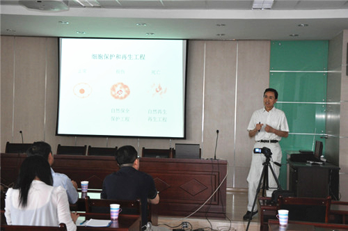 访问团参观了西部特色生物资源保护与利用教育部重点实验室,实验室邓光存副主任向专家们介绍了我院的基本情况和实验室的科研工作。美国西北大学高通量分析实验室主任栾祺浩教授、生物工程系刘树谦教授和美国芝加哥大学柯运波教授分别为我院师生作了题为“创新药物研发的分子基础及高通量模式”、“细胞保护与再生工程”和“激酶在信号传递中的新型作用机制”的精彩学术报告。讲座互动环节,三位专家热心解答了参会师生提出的问题,专家们诙谐的语言、详实的数据、严谨的态度、热情的答疑,赢得在场师生十余次热烈掌声。