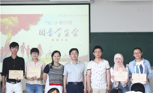 【必赢242net官网新闻中心讯 教育学院 孟鑫楠/文 韩璐 季瑜/图】6月15日下午13时整,教育学院在贺兰山校区文科楼408室举行了学院第十七届团委学生会换届大会。院党委副书记张翼、学生工作办公室主任张惠、团委书记郑睿以及全体团委学生会成员参加了会议。会议由郑睿老师主持。