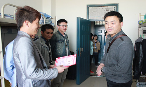 【必赢242net官网新闻中心讯人文学院史文杰】为加强学生公寓管理,努力塑造开放、整洁、文明、健康的生活环境,3月26日中午,人文学院“文明宿舍”颁奖仪式在文科楼学生公寓举办。学院学生工作办公室主任刘杰,2013级年级主任潘巍及团委、学生会主要学生干部和优秀文明宿舍成员参加了此次颁奖仪式。