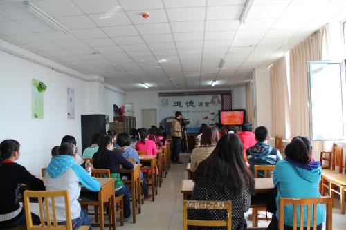 此次道德讲堂共分为“自我反省、唱歌曲、学模范、诵经典、发善心、送吉祥”六个环节,课堂内容丰富、流程规范、层层深入、发人深省。在“自我反省”环节中,同学们对自己日常学习、生活中的的行为进行自我反省,认识到珍惜时间、多做善举要从身边小事做起;在“唱歌曲”环节中,同学们合唱了《学习雷锋好榜样》,铿锵有力的旋律再次激起同学们对雷锋精神的敬仰和向往之情;“学模范”环节中,同学们观看了关于雷锋的记录短片,兀瑾同学分享了她对雷锋精神、社会主义核心价值观的理解和思考,呼吁当代大学生要正确认识自己,常怀奉献、关爱、奋斗、坚韧、感恩之心,倡导大学生从自我做起、从细微做起,做雷锋精神的践行者;在“诵经典”环节中,主持人带领同学们一起诵读了《论语》、《尚书》中的经典名句;同学们在“发善心”环节中开怀畅谈,积极发表自己对雷锋精神及社会主义核心价值观的理解与感悟,纷纷表示要做个有心人,处处学雷锋;在最后的“送吉祥”环节中,宣讲员为大家送上了寓意吉祥如意的吉祥卡。