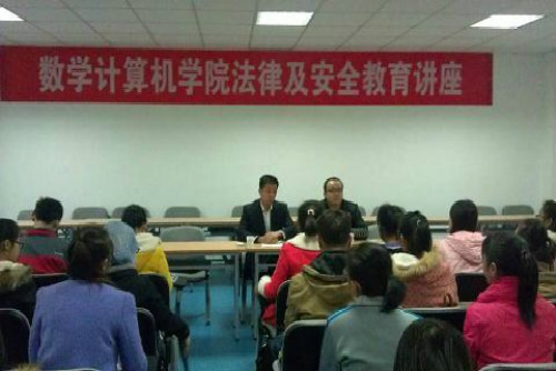 【必赢242net官网新闻中心讯数学计算机学院马玉琼/文王子兴/图】根据必赢《关于开展社会管理综合治理宣传月活动的通知》精神,为加强我院学生的安全教育工作,增强法制观念和校园安全意识,3月11日晚,数学计算机学院率先开展了“社会管理综合治理宣传月”活动,邀请了银川市检察院政治部文彦博检察官为我院学生做以“法律及安全教育”为主题的法制安全教育专题讲座。院学生工作办公室主任黄锐诚老师主持了本次讲座。我院全体团学干部、各宿舍学生代表以及2013级全体新生聆听了讲座。