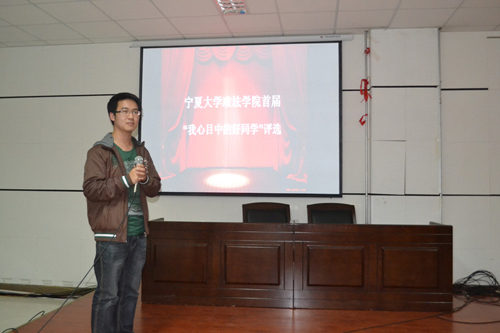 活动中,由各班推荐的18位候选人依次进行了先进事迹汇报,他们的事迹虽然算不上是惊天动地的壮举,却足以让在座的师生为之动容,同学们倍受鼓舞。经过激烈地角逐,最终杜贵贵、裴文雁、韩其甫、王淳、马锦明、李巨洋、沙如月同学获得政法学院“我心目中的好同学”荣誉称号。学院党总支副书记崔明堂充分肯定了“我心目中的好同学”评选活动的重要意义,指出整个评选活动做到了公平公正,希望本次活动能够激励广大学生积极向上、勇于拼搏。