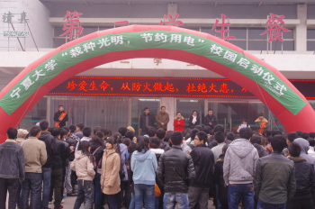 在12月13日中午校本部C区二餐厅门口举行的活动启动仪式上,“仙人掌”环保协会针对学校目前教学楼、办公楼内存在一些“室内人迹绝、灯光映长空”“明也开灯、暗也开灯”“一人案前、众灯普照” 的浪费电力资源的现象,向大家发出倡议:以主人翁的责任感,从自我做起,从点滴做起,用大家的小小行动汇穿成海,让大家行动起来,共建节约型校园。现场的同学踊跃进行了签名并承诺从一点一滴做起,为低碳生活奉献自己的一份力量,以节能降耗为己任,做时代的环保先锋人。