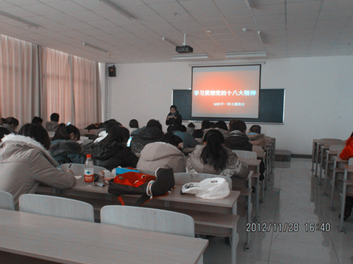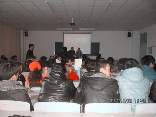 在主题班会上,同学们紧紧围绕十八大的召开背景、主要内容、意义和历史地位,结合专业特点,展开了充分的讨论和学习,分享各自的心得。