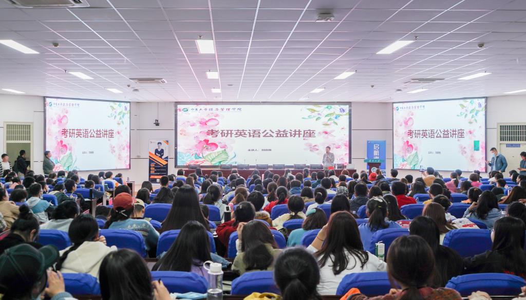 刘晓艳将考研英语的备考时间划分为四个准备阶段,第一阶段要做到对考研单词做到眼熟,同时彻底掌握语法及长难句;第二阶段要对真题中完形填空及阅读部分进行精读,并充分理解;第三阶段要在掌握做题方法后攻克近15年考研真题;最后阶段则是复习总结,考前模拟。这期间,她旁征博引,妙语连珠,精彩纷呈的讲解让在座学生回味无穷,掌声和欢呼声经久不息。