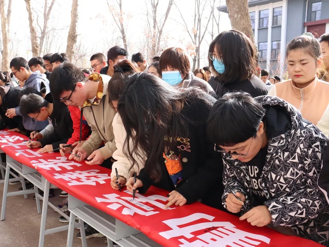 全院学生参加活动并在横幅上签下自己的姓名。