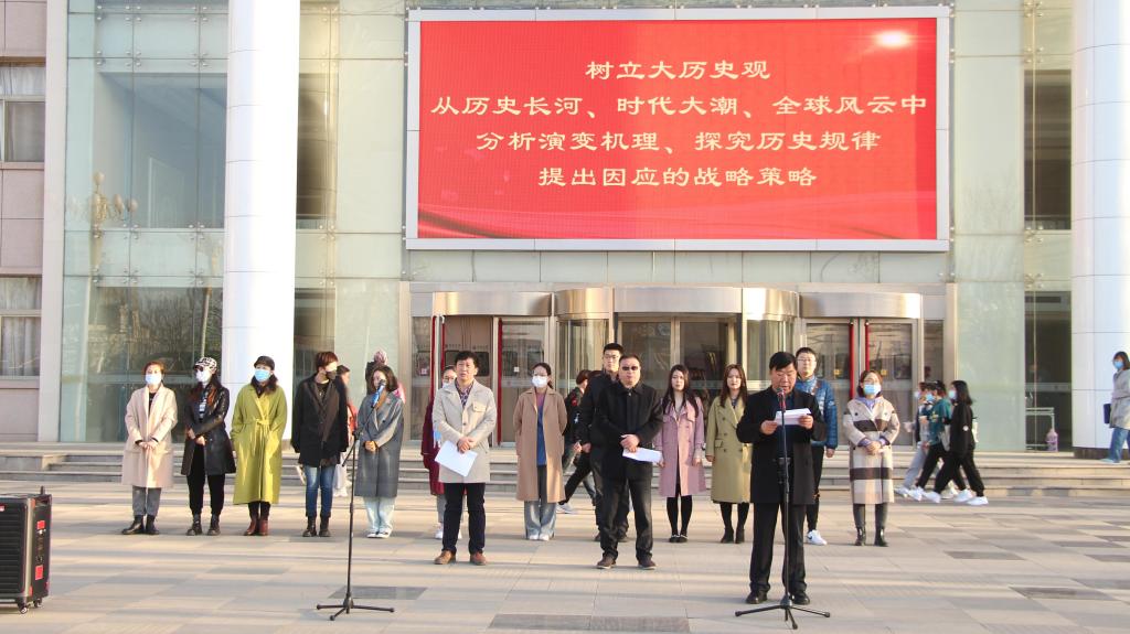 【必赢242net官网新闻中心讯 音乐学院】3月22日,音乐学院在德勤楼前广场举行“学习党史守初心 砥砺奋进担使命”升国旗仪式暨党史学习教育动员大会,音乐学院党委副书记贾述道主持升国旗仪式。