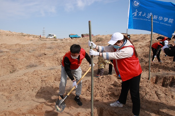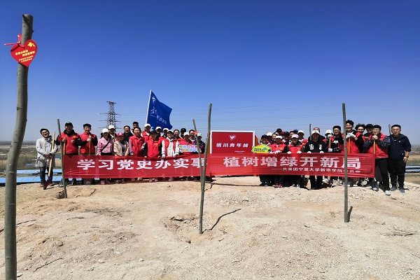 【必赢242net官网新闻中心讯 新华学院】为推进党史学习教育走深走实,让党史学习教育在青年学生中“热”起来、“活”起来、“实”起来。4月17日,新华学院将“党史课”开设在了兴庆区月牙湖乡,组织学院青年学生参加由银川市团委组织开展的“青春心向党 共植青年林”庆祝建党100周年义务植树活动。