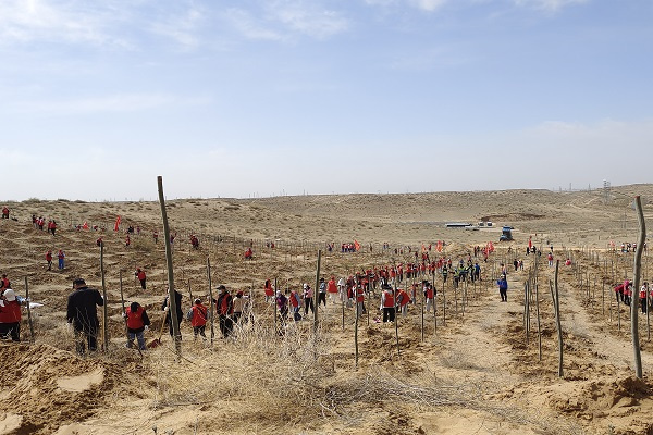 植树活动在《茁壮成长正青春 暖阳少年心向党》诗朗诵中拉开了帷幕。植树点上,同学们撸起袖子、相互配合、干劲十足,一丝不苟完成每一道工序。有的积极铲土填坑、挥锹培土;有的认真夯实土层、围堰浇水,个个争先恐后,将一株株小树苗细心栽植在规划点上。经过一上午的紧张劳动,一株株新栽种的树苗舒展身姿、挺拔而立,在微风中萌发盎然生机,为春日的银川增添了青春活力。