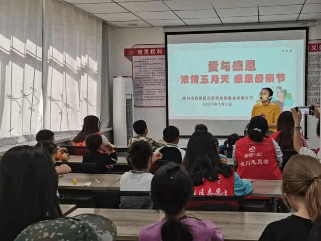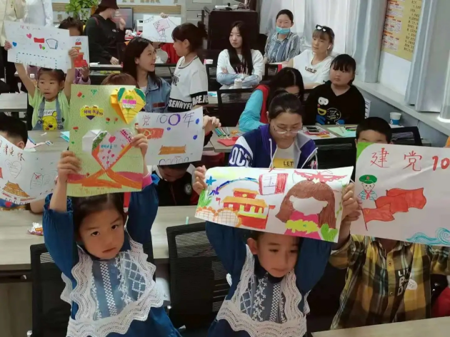 活动中,社区工作者围绕“爱与感恩”这一主题,深刻阐述了“谁言寸草心,报得三春晖”的至理,引导同学们要懂得感恩、学会感恩,通过努力学习更好地报答父母的养育之情;国际教育学院志愿者向各位小朋友们讲述了生动的党史小故事、小知识,小朋友们对中国共产党历史展示出极大的兴趣,并为伟大的党和强大的祖国感到自豪和骄傲。讲解结束后,社区工作者分发彩纸、剪刀、彩笔,志愿者和小朋友们一起制作母亲节贺卡和庆祝建党100周年手抄报,小朋友脸上认真的表情与眼神中流露出的浓浓爱意,无不让人动容。