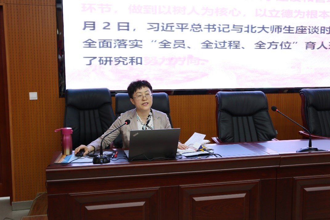 尹娟从“新时代”“立德树人”“三全育人”“课程思政”的内涵及其相互之间的关系、党史学习教育的重大意义等方面进行了详细的讲授。解读了新时代高等教育的育人新格局、新理念。她强调,教师是红色基因的传播者,只有学好党史,才能更好的教育广大青年学生。要教育青年学生不忘红色历史,铭记英雄为今天的幸福生活而不惜献出生命的大无畏精神,要将学习党史转化为刻苦学习的动力,努力学好科学文化知识,担负起民族复兴的历史重任。