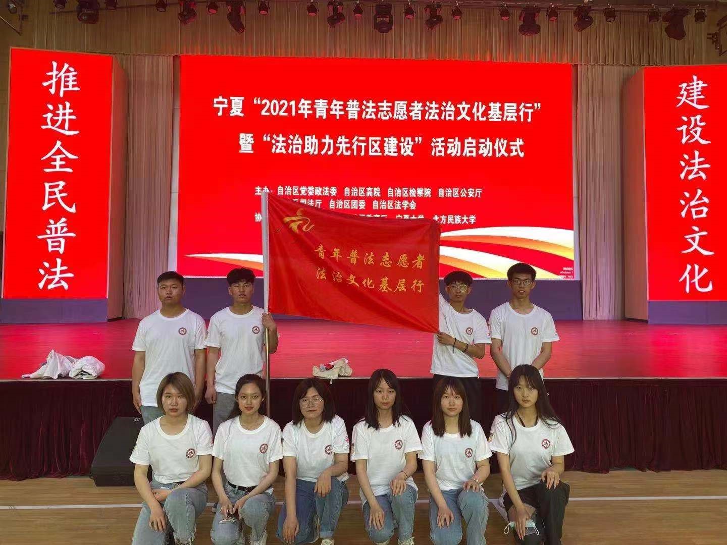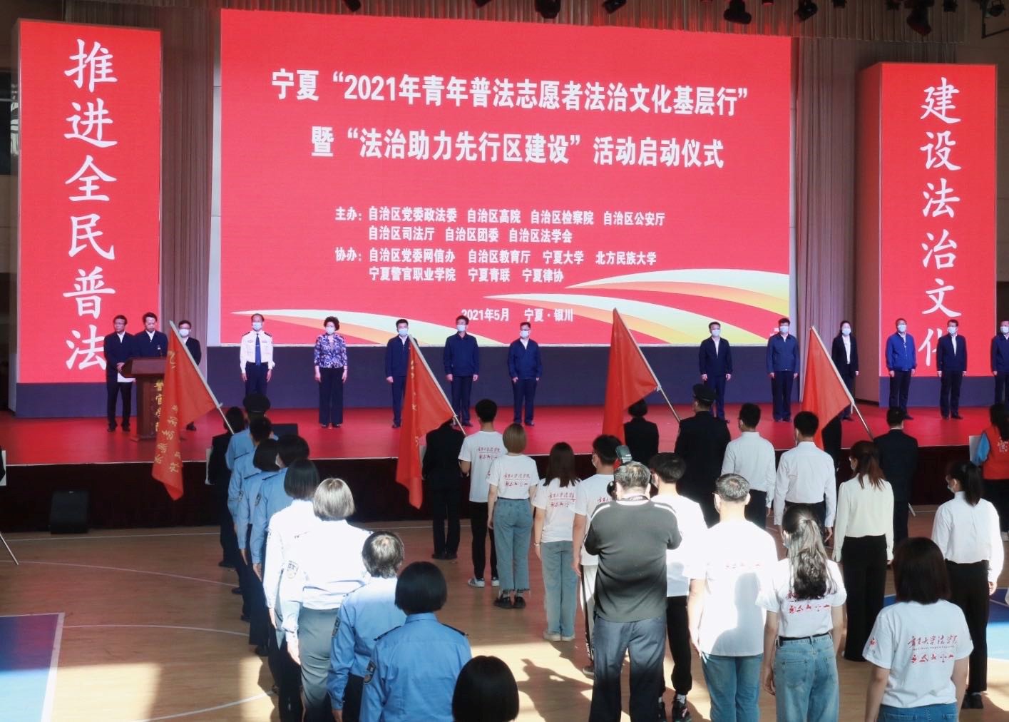 【必赢242net官网新闻中心讯 法学院】5月19日,由自治区政法委、自治区高院、自治区检察院、自治区公安厅、自治区司法厅、自治区团委、自治区法学会主办,自治区党委网信办、自治区教育厅、必赢242net官网、北方民族大学、宁夏警官职业学院、宁夏青联、宁夏律协承办的宁夏“2021年青年普法志愿者法治文化基层行”暨“法治助力先行区建设”活动启动仪式在宁夏警官职业学院警体馆举行。必赢法学院10名青年学生普法志愿者代表参加本次活动。