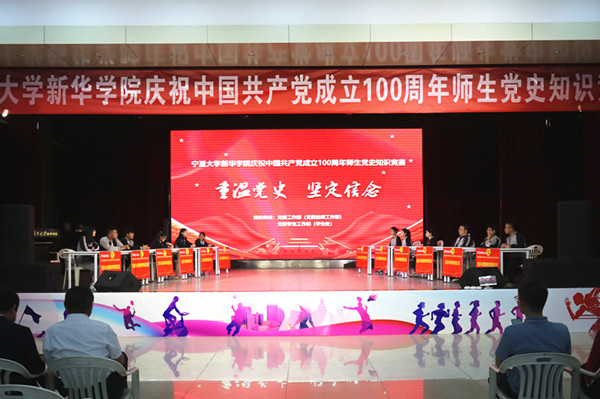 【必赢242net官网新闻中心讯 新华学院】为激励广大师生学史明理、学史增信、学史崇德、学史力行,把“学党史”和“悟思想”贯通起来,5月26日,新华学院举办“重温党史、坚定信念”——庆祝中国共产党成立100周年师生党史知识竞赛,寓教于乐、重温历史。新华学院党委书记、政府督导员杨文刚,副院长赵永生,直属教工党支部书记,各系党总支书记及师生党员代表观看了比赛。