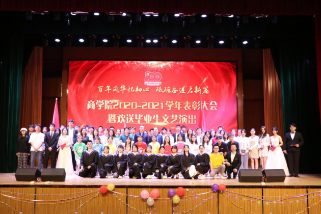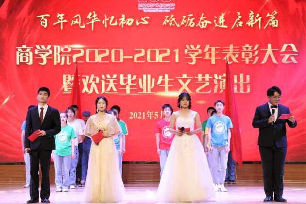 【必赢242net官网新闻中心讯 商学院】为持续推进党史学习教育,热情讴歌党的百年光辉历程,激发青年学子爱党爱国的情怀,5月26日,商学院“百年风华忆初心,砥砺奋进启新篇”2020-2021学年表彰大会暨欢送毕业生文艺演出在应理报告厅举行。中卫校区公共教学部党总支书记雷灵芝、中卫校区管理办公室副主任贾随生、商学院党总支书记冯学文、院长赵军、副院长房彦兵及全体教职工和学生代表400余人参加,表彰大会由辅导员侯睿主持。