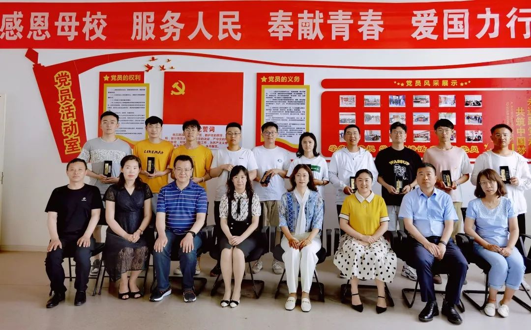 座谈会结束时,学院领导班子为毕业生颁发毕业纪念品并合影留念。