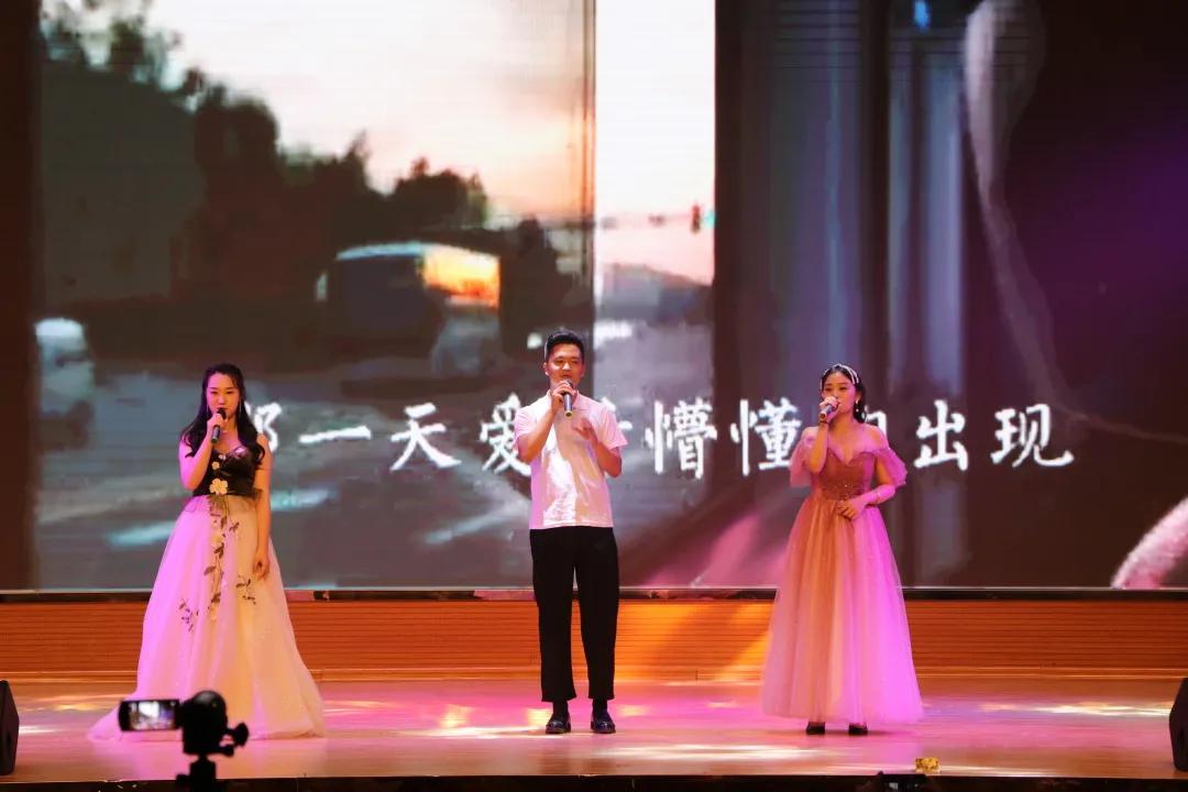 晚会节目形式多样,风格各异,贯穿了 2021届毕业生在校四年的欢笑与泪水,激荡着毕业生们奋发图强的希望与难舍母校的情怀,现场观众掌声热烈。学院青春舞团带来的舞蹈《奔跑》,以青春活力的气息拉开了晚会的序幕;诗朗诵《写在离别的路口》,表演者声情并茂,表达了学子离别之际对母校的不舍与眷恋;三位毕业生演唱的歌曲《青春毕业季》,唱出了惆怅伤感的毕业学子之声;独舞《你不能遗忘的夏天》,以柔美的舞姿、结合叙事的表演,展示了大学生活中的点滴记录与绚烂青春。