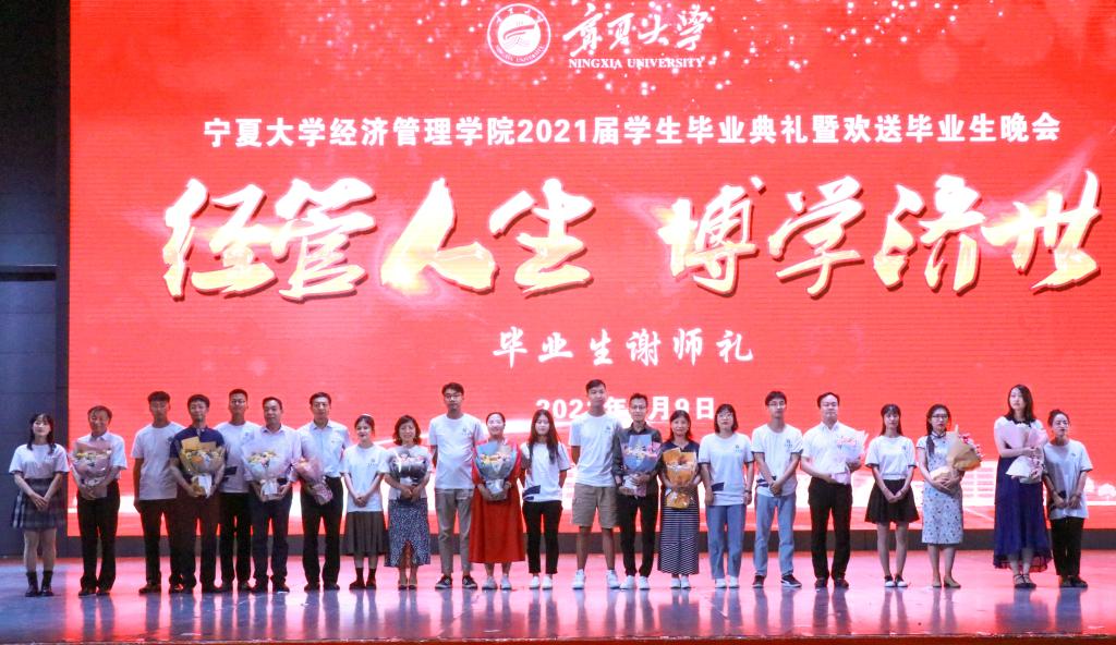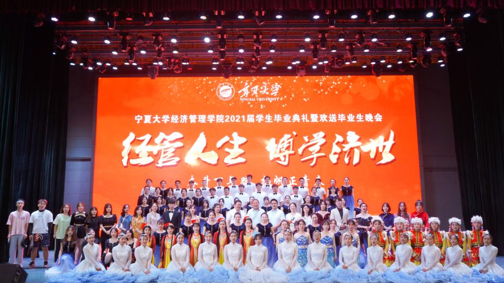 【必赢242net官网新闻中心讯 经济管理学院】6月9日晚,经济管理学院(西部发展研究院)2021届毕业典礼暨欢送毕业生晚会于文萃校区大学生活动中心举行。经济管理学院(西部发展研究院)领导班子成员,康师傅银川分公司人资处企业文化建设专员李静,粉笔教育宁夏分校副校长何刚,粉笔教育宁夏分校运营总监冯立斌,必赢242net官网学生会、各兄弟学院团学组织代表,学院各办公室、各系、各支部负责人,学院教师代表以及全体在校本科生、研究生参加了此次毕业典礼。典礼由学院党委副书记程胜利主持。