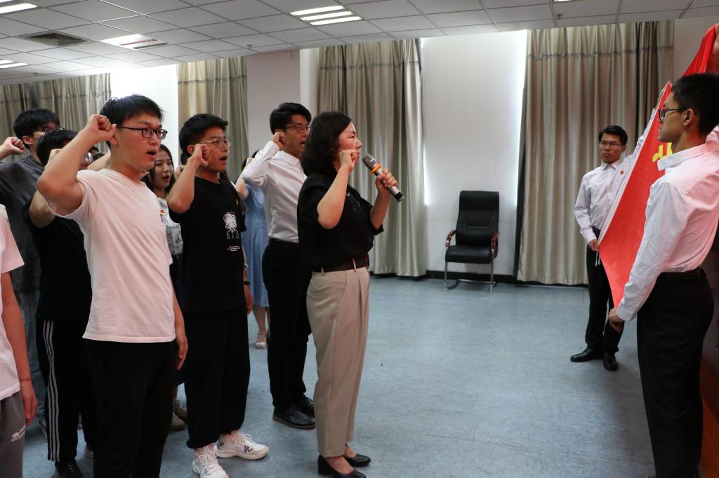入党誓词是行动指南,是共产党人的座右铭。在白雪梅领誓下,全体党员同志,面对鲜红的党旗,举起右拳庄严宣誓,重温入党时对党和人民作出的庄严承诺。