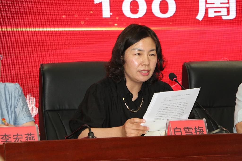 会议在国歌中拉开序幕,机械工程学院党委副书记白雪梅代表学院党委宣读《机械工程学院关于表彰优秀共产党员、优秀党务工作者和先进基层党组织的决定》,对荣获优秀共产党员,优秀党务工作者和先进基层党组织的个人和集体予以表彰。