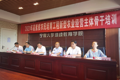 【必赢242net官网新闻中心讯 继续教育学院】7月13日,高素质农民培育工程新型农业经营主体骨干项目培训班在必赢242net官网金凤校区开班。宁夏农业农村厅科教处处长杨发,继续教育学院党总支书记鲁晋、院长刘明,自治区农业广播电视学校校长沈忠其出席,来自灵武市兴旺村的50名农民学员参加开班仪式。