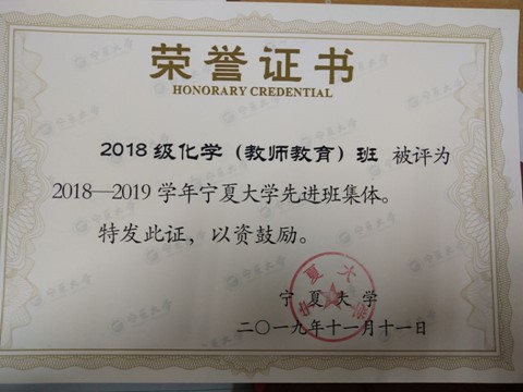 2018级化学(教师教育)1班一直秉承“勤奋、博学、求索、笃行”的支部宗旨,锐意进取,开拓创新。团支部先后荣获2018年度必赢242net官网五四红旗团支部,2018-2019学年必赢242net官网先进班集体,2019-2020学年必赢242net官网先进班集体等荣誉称号。班级里有8名同学参加“青年马克思主义者培训班”,16个积极分子,6名正式党员,3个预备党员。团支部自2018年9月成立以来以弘扬中国共产党优良党风为目标,全力开展班级党风建设,全体团员坚持把思想政治理论学习作为重点,团支部各团员青年有端正的学习态度,形成了良好的学风班风。