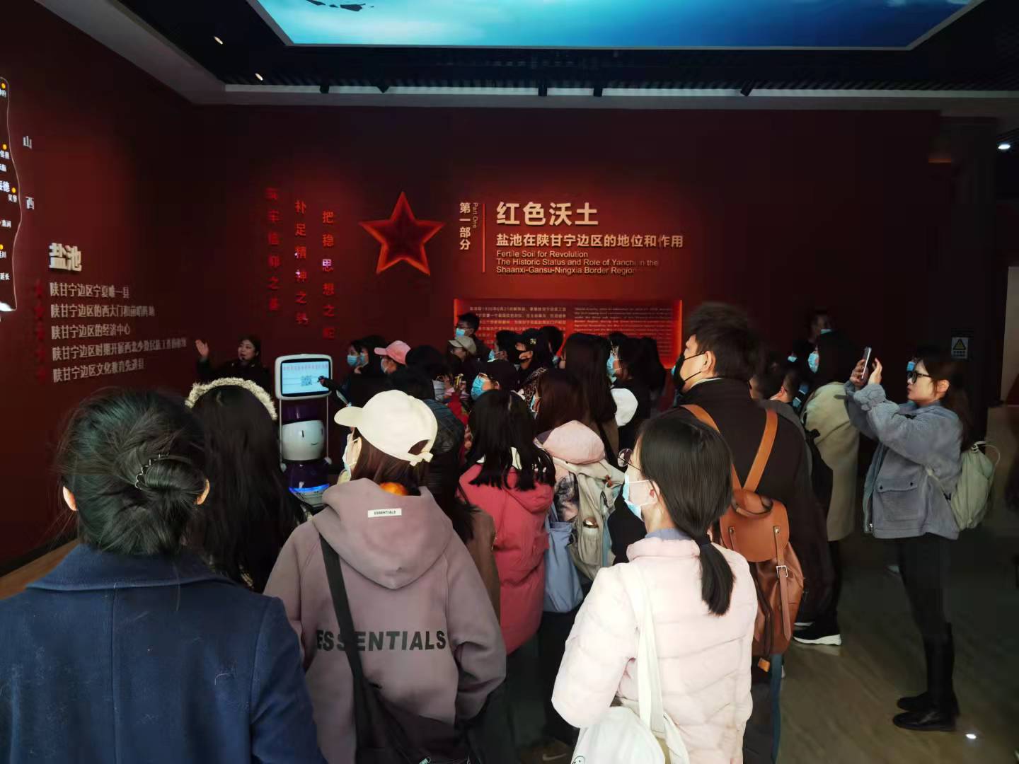 在现场讲解员的讲解下,同学们认真听、仔细记,对讲解进行了全程录音,并对每一个展品和展示文字进行了拍照。通过丰富翔实的文字、图片及实物介绍对盐池早期革命活动、党组织建设以及红色政权建立与发展等英雄事迹进行了全面了解。