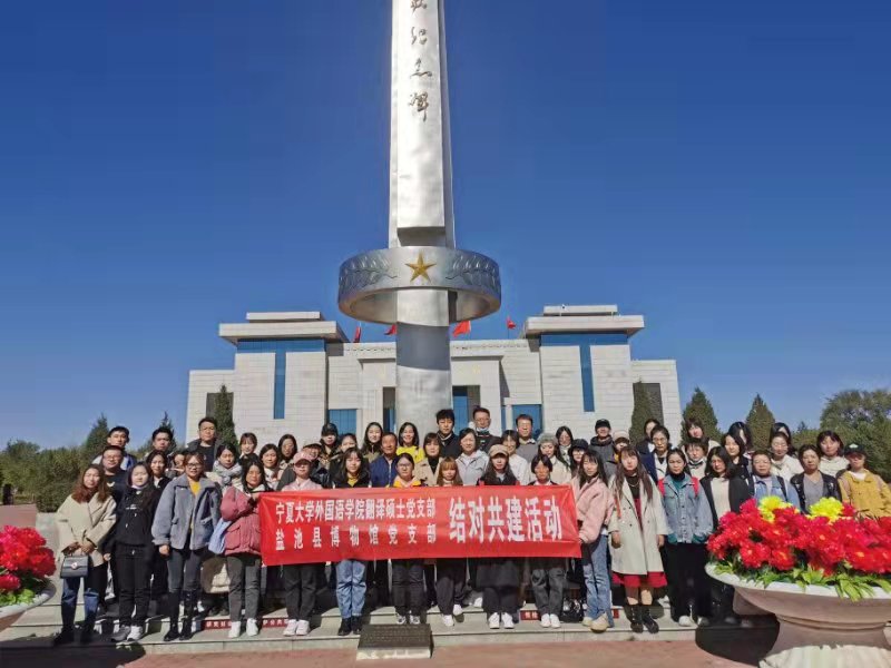 【必赢242net官网新闻中心讯 外国语学院】为进一步加强党史学习教育,深入推进“我为群众办实事”实践活动走向深入。10月11日,外国语学院党委副书记余洁、副院长朱海燕及翻译硕士党支部书记、学生党员赴盐池革命纪念馆,与盐池博物馆党支部开展结对共建活动。