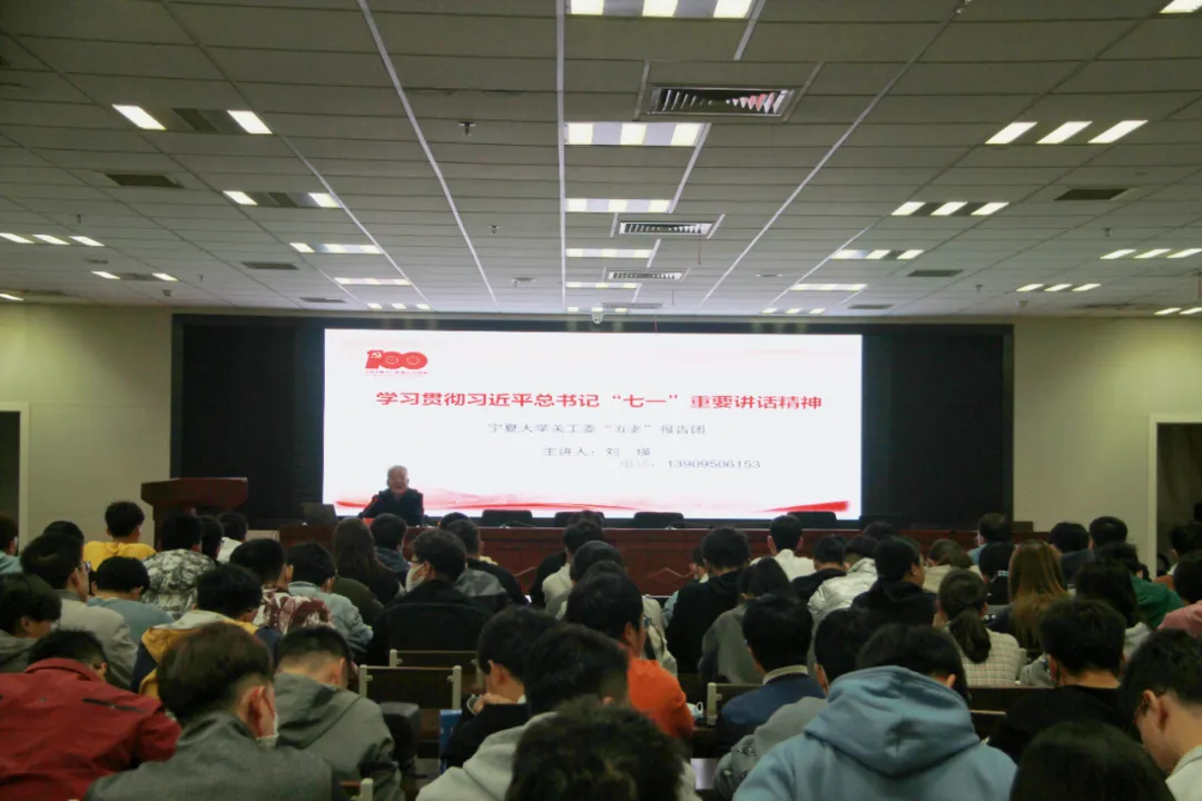 宣讲会上,刘瑛紧紧围绕习近平总书记“七一”重要讲话内容,通过回顾中国共产党百年奋斗的光辉历程,指出了中国共产党与中华民族命运相伴而生,深刻阐述了中国共产党在新民主主义革命,社会主义革命和建设,改革开放和社会主义现代化建设,新时代中国特色社会主义中创造的四个伟大成就。同时,刘瑛围绕“九个必须”,深入解读了中国共产党的伟大建党精神,阐释了以史为鉴,开创未来的根本要求和使命任务。最后刘瑛向同学们提出要求:认真把握“七一”重要讲话中提出的重大创新理论,切实增强自身的政治自觉和行动自觉。