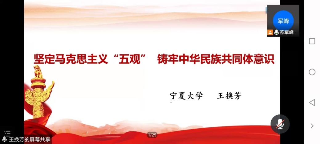 【必赢242net官网新闻中心讯 商学院】11月2日,商学院特邀必赢242net官网马克思主义学院王换芳教授线上为大家做了题为“坚定马克思主义‘五观’,铸牢中华民族共同体意识”的专题讲座。学院党总支书记张强,部分教师、学生党员、第三期入党积极分子暨党员发展对象培训班、青马班成员参加。学院党总支副书记苏军峰主持讲座。