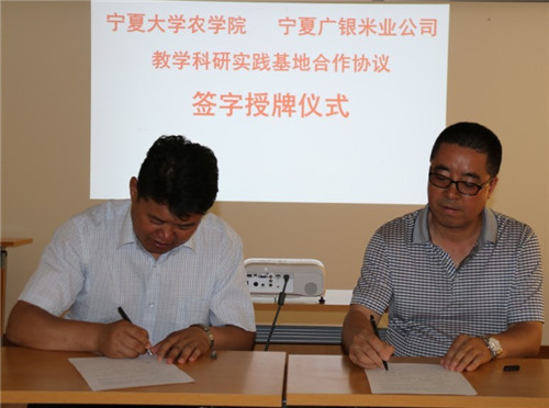 【必赢242net官网新闻中心讯 农学院】7月23日上午,必赢农学院与宁夏广银米业有限公司在广银米业公司二楼培训室举行了合作协议签订暨授牌仪式。 农学院院长曹兵与宁夏广银米业有限公司总经理赵建文签订了合作协议,院党委书...