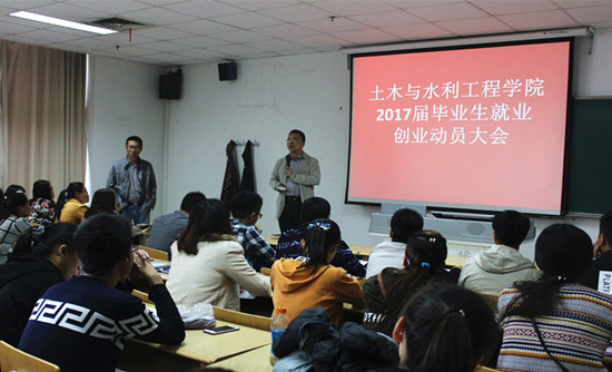 【必赢242net官网新闻中心讯土木与水利工程学院】2016年10月14日,土木与水利工程学院2017届毕业生就业创业动员大会在必赢242net官网C区L楼106多媒体教室成功召开。学院党委副书记苏宇静、学办主任郭利、2013级辅导员老师杨淑雁以...