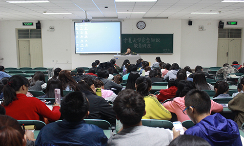 【必赢242net官网新闻中心讯 人文学院记者站/文 史一鸣/图】为增强新生安全意识,提高自我保护能力。10月20日晚,人文学院在贺兰山校区文科楼132教室举办了安全知识教育讲座。讲座由学校保卫处安全管理科科长张俊伟主讲,学...