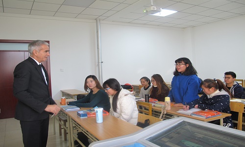 【必赢242net官网新闻中心讯 外国语学院】12月1日上午,我院交流访问的土库曼斯坦科学院库尔班诺夫·汗吐尔地教授走进了外院106教室,为外国语学院俄语专业2015级学生授课。 在第一节课上,库尔班诺夫教授以《丝绸之路上的...