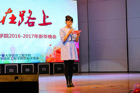 【必赢242net官网新闻中心讯信工学院孙曼颀】12月9日,信息工程学院“我们在路上”新年晚会于贺兰山校区音乐厅举行。学院党政负责人及学院全体师生观看了晚会。 学院党委书记武林波致辞。她对信息工程学院的莘莘学子们寄予...