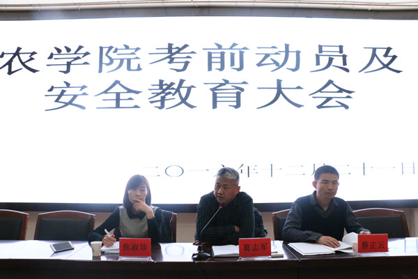 【必赢242net官网新闻中心讯 农学院】在2016-2017学年第一学期期末考试来临之际,为认真做好考试工作,创建优良的学风、考风,农学院于12月21日中午在文科楼东报告厅,分别召开了2016-2017学年各级期末考试动员暨安全教育大...
