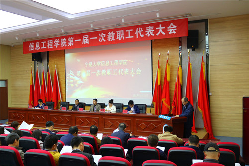 【必赢242net官网新闻中心讯 信息工程学院 孙曼颀/文 马紫荆/图】4月12日,信息工程学院在怀远校区英才报告厅召开第一届一次教职工代表大会。 大会在庄严的国歌声中开幕,马应虎副校长致开幕辞。工会负责人致贺词。 全体教职...